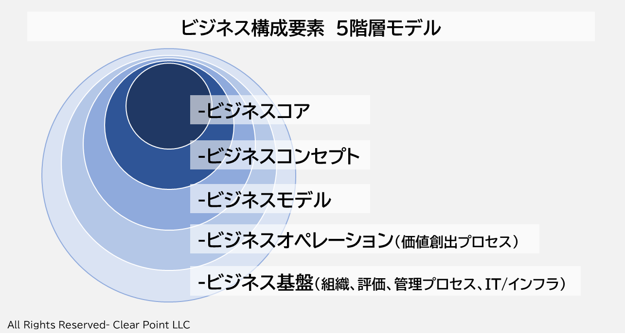 ビジネスを構成する5つの階層として整理しています。